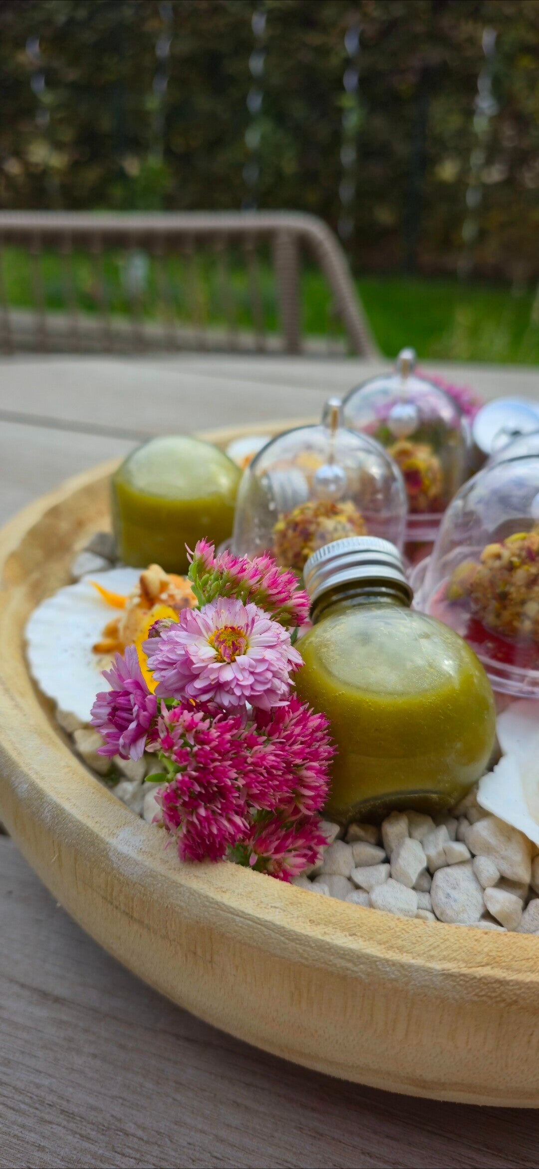 * Praline van paté in crumble van pistache & rozen met konfijt - € 2,50