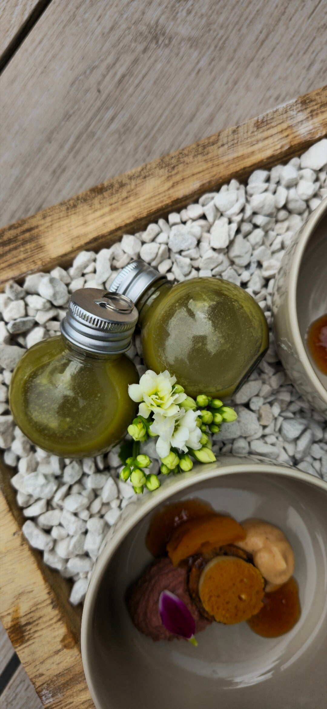 * Crème van zwarte pens gezoet met appel, appel in cider, crème van abrikoos, peperkoek & crumble van vijg - € 4,00 (enkel in de Winter te verkrijgen)